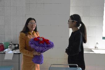3月7日下午一点五十,九游娱乐(JIUYOU)官方网站_9YOU GAME蒲爱园秘书部部长李卉在K406将两束康乃馨分别送予儿科和妇科教研室的两位老师,提前祝教研室的老师节日快乐,身体健康。老师们很开心,并对大家的心意表示感谢。唐慧婷老师还开玩笑说:“早知道我就穿得隆重正式点了。”