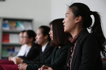 面试主要分为两大部分,首先面试者以5人每组的方式进入面试场地依次进行3分钟自我介绍,然后主考官们根据其自我介绍提出相应的问题和建议。同学们为了这次的面试都做足了准备,每个人都精心装扮过自己。曹花老师建议同学们面试时应打扮得体,既要穿正装,又不能太过死板;董玲老师提出,面试时最重要的就是自信,要记得微笑;丁亚萍老师则指出护士这一工作,亲和力十分重要……每位面试官都针对面试者的表现从着装、礼仪、自我介绍、简历、回答问题等方面进行了点评,指导和总结,旨在全面提升学生求职面试的综合能力。