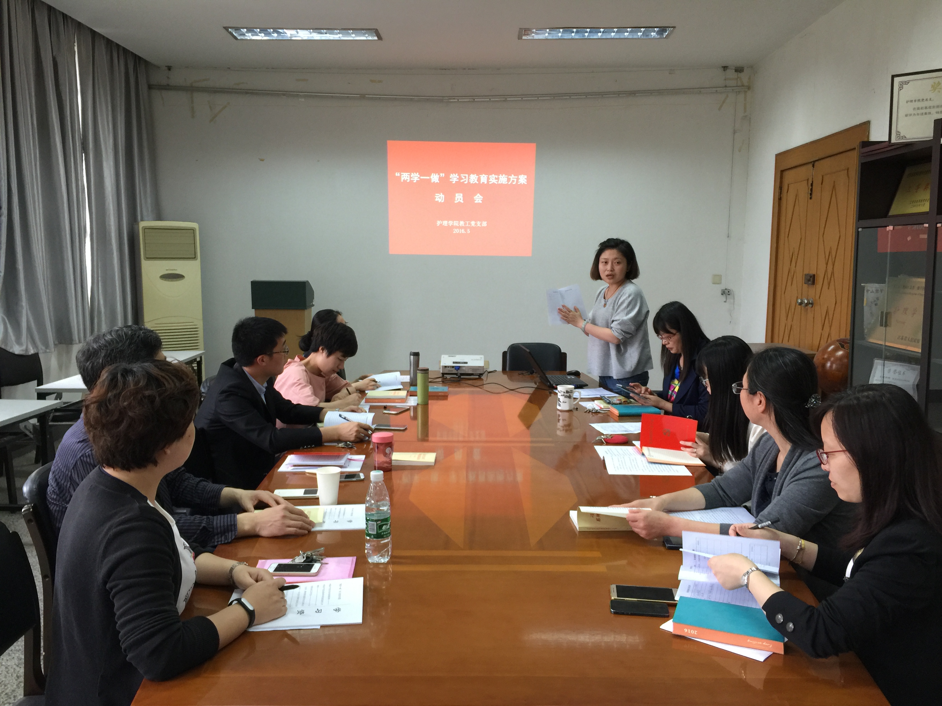 2016年5月20日,九游娱乐(JIUYOU)官方网站_9YOU GAME教工党支部全体在岗教师党员,在五台校区学院会议室召开“两学一做”学习教育实施方案动员会。会议由支部副书记王丽丽老师主持。