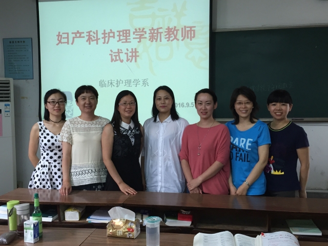 2016年9月5日,临床护理学系《妇产科护理学》课程组织新学期首次承担本科生理论教学的老师进行专业课试讲。活动于下午14:00准时在五台校区3-203教室进行,由课程负责人汪璐主持,临床护理学系主任孙国珍、副主任董玲、护理人文与管理学系副主任朱军华、基础与社区护理学系季明辉、临床护理学系唐慧婷共同参加,听取来自鼓楼医院的魏素花、郑雅宁护士长理论课试讲。