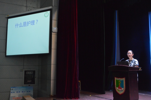 此次大会由院长崔炎老师主讲,她从四个方面介绍了护理专业,分别是什么是护理、护理专业的创始者南丁格尔的介绍、护理专业的发展与就业以及社会需求、专业素养。她通过一个小时的介绍向2016级的新生大概地介绍了他们即将要学的专业,领他们入门,告诉他们:“护理是一门学科,更是一门艺术。”