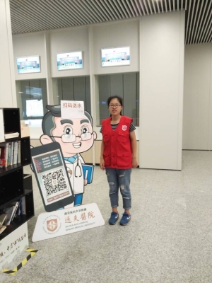 赵佳仪被分配在一楼大厅宣传逸夫医院的APP,负责扫码送水,并且为前来就医的患者指导路线。沈淼被分到了二楼B超室帮助护士工作。虽然志愿活动只有3个小时,但是却让大家对医院有了更深的了解。本次志愿活动也给了大家一个很好的机会去接触医院和患者。