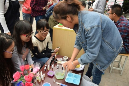 1011日中午11点半,15级护理2班班级项目化“手工香皂”活动在树人广场如火如荼地展开。这次活动由2班学生自己策划、自己组织,彰显2班学子的创造力和青春活力