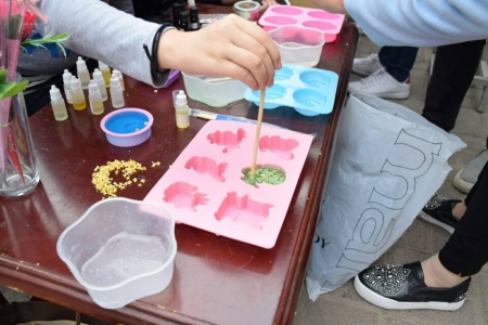 一块块色彩纷呈的手工香皂,外表美观、馨香宜人,受到广大同学的青睐。上午11时许,班级志愿者早已把制作香皂的模具、材料等准备就绪,一边着手制作、一边等待着同学们的到来。一时间,整个空气中馨香四溢。爱美之心人皆有之,许多闻赶来的同学抵不住诱惑,纷纷参与到制作中。有的拿出了自己晒的桂花,加入到香皂中。形状各异的模具,芳香四溢的香皂材料,同学们纷纷选好了自己心仪的那一款,耐心等待着香皂的完成。由于此次活动只有前30名登记的幸运儿,可以免费地获得了我们自制的手工香皂。加之自制的香皂完全是现场制作,所以每一个香皂都需要时间来制成、包装感谢每一同学的耐心等待。现场还准备了花语征集册,有近50位同学将自己最喜欢的花及其花语登记在了上面。