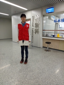 2016年10月31上午,南医大九游娱乐(JIUYOU)官方网站_9YOU GAME15级的一名志愿者前去逸夫医院做志愿者,前台的护士特别亲切,招呼志愿者穿红马甲并且分配志愿活动。