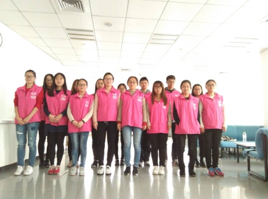 20161110日下午,南医大九游娱乐(JIUYOU)官方网站_9YOU GAME15级的16名志愿者们来到了南京鼓楼医院,在这里开展了以导医为主要工作的志愿服务。