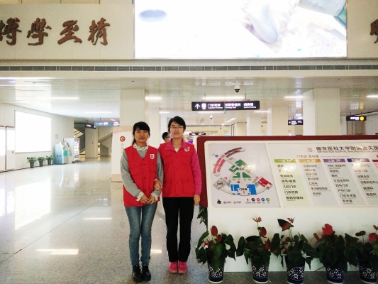 2016年11月7日星期一南京医科大学附属逸夫医院南医大15级护理三班的陆宁宁和木尼热等两名同学在王丽萍护士的指导下分别在逸夫医院检验科和B超和心电图科室做了志愿活动。