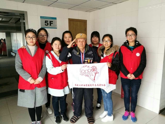 在经过老义工进行的简短培训后,大家就积极投入到志愿活动中。在荣平敬老院有三位老兵,这些老兵都是参加过抗日战争的国民党军,其中有两位爷爷还是上过黄埔军校的。
