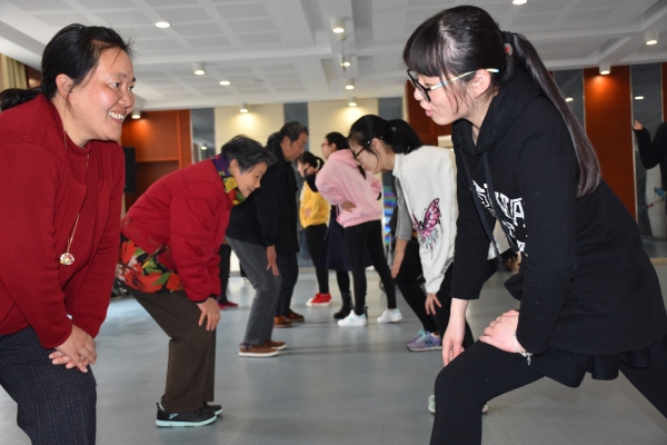 在公寓的活动室,我院教师和学生党员们给老人们带来了老年健身保健操,手把手、面对面带着老人们动起来,教给他们在空闲时间用规范的动作活动筋骨,提高身体素质。在学生们青春洋溢的笑容感染下,老人们的脸上也洋溢着幸福快乐的笑容。或轻声细语,或谈笑风生,笑容感染了在场的每一个人,恰似春风拂面,整个活动室充满了欢声笑语和无限温暖。