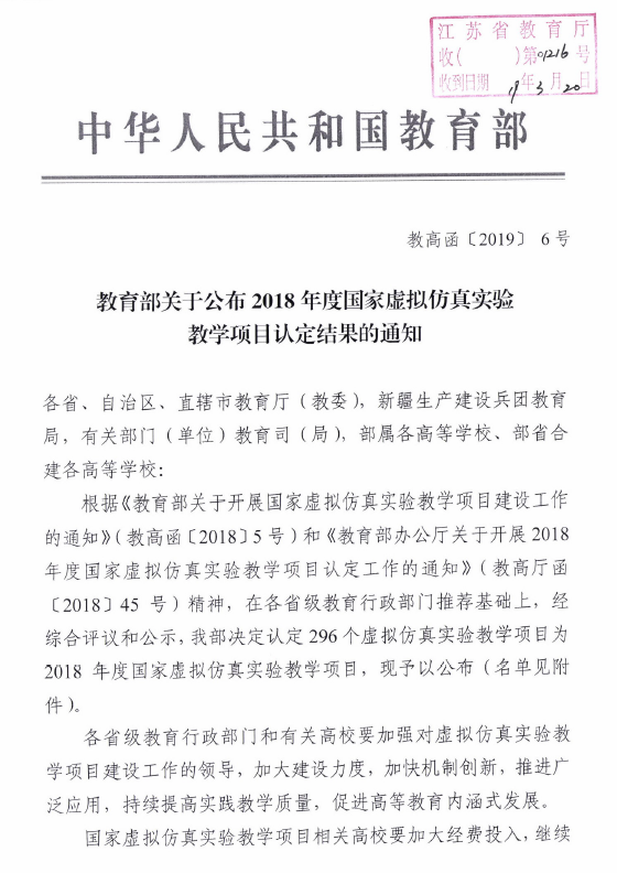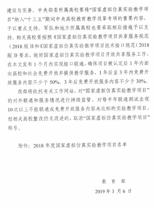 2019年3月6日,教育部发布了《关于2018年度国家虚拟仿真实验教学项目认定结果的通知》,来自全国186所高校共计298个项目入选,共涉及23个学科领域。这也是继2018年6月教育部公布首批105个国家级虚拟现实仿真实验教学项目后,教育部再次认定这一重量级教学项目。