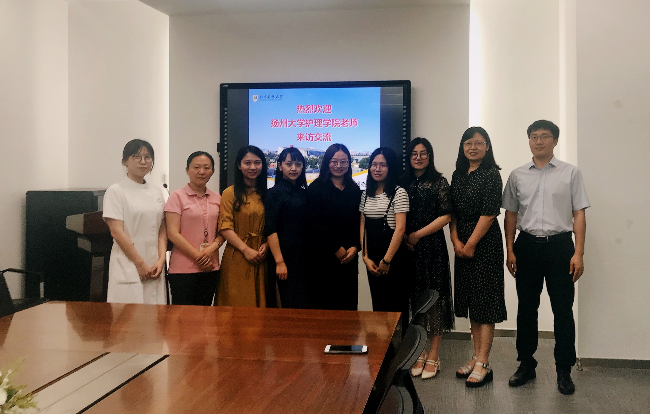 6月19日,扬州大学九游娱乐(JIUYOU)官方网站_9YOU GAME刘林、邹炎、师亚、臧娴和袁媛5位老师来我院交流,我院丁亚萍副院长、陈明霞、李现文老师和羊洋老师参与交流接待。首先由我院丁亚萍副院长致欢迎辞,介绍护理学实验教学示范中心建设概况,双方就实验中心建设、实验教学等方面进行交流,并参观护理实验中心。