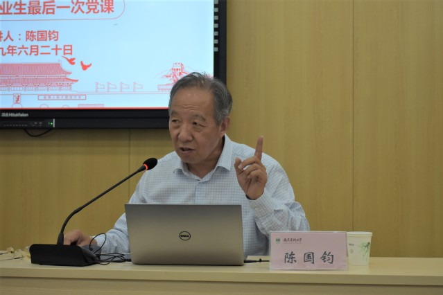 6月20日下午,学海楼c503的教室座无虚席。九游娱乐(JIUYOU)官方网站_9YOU GAME在此为2019届毕业生党员举行了最后一次党课。党课的讲者是江苏费孝通教育基金会理事长、原南京医科大学党委书陈国钧老师。学院全体毕业生党员与全体教职工参加了此次党课。