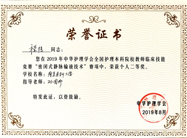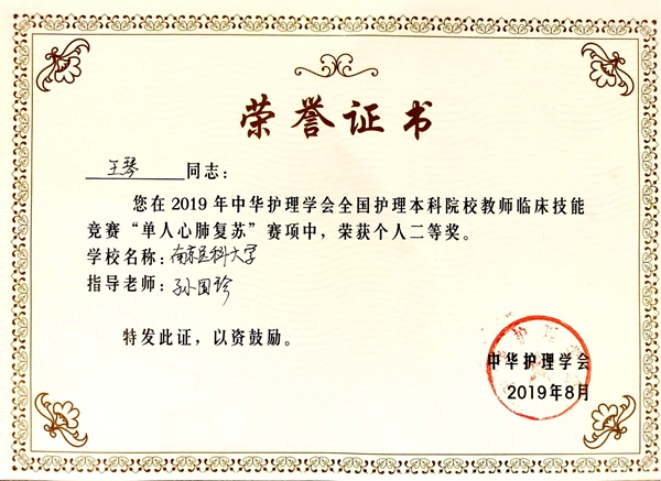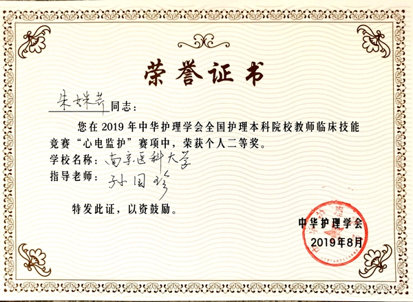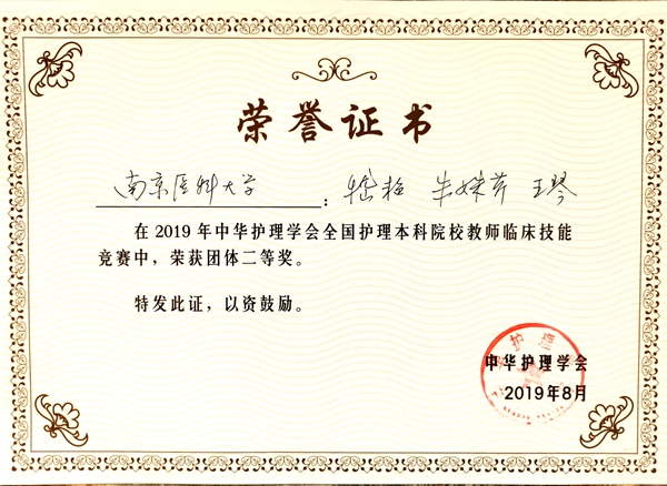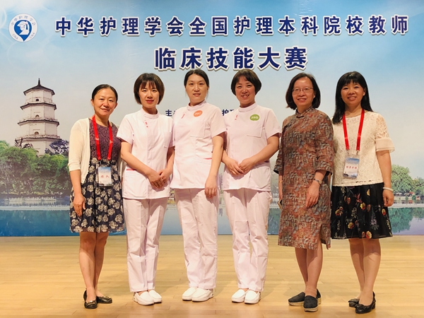 护理人文与管理学系嵇艳老师、临床护理学系朱姝芹老师和第一附属医院心脏内科王琴老师组成团队代表我校参赛。三位教师以扎实的临床专业技能和专业知识以及出色的临场表现,取得团队及各单项二等奖的优秀成绩。为备战本次比赛,九游娱乐(JIUYOU)官方网站_9YOU GAME和一附院护理部组成专家指导团队和后勤保障团队,由孙国珍教授担任总指导老师。本着“以赛促教、以赛促改、赛练结合”的目的,三位老师克服伤病疼痛,战高温强斗志,经过刻苦训练,赛出南医人优秀的专业素养和风采!