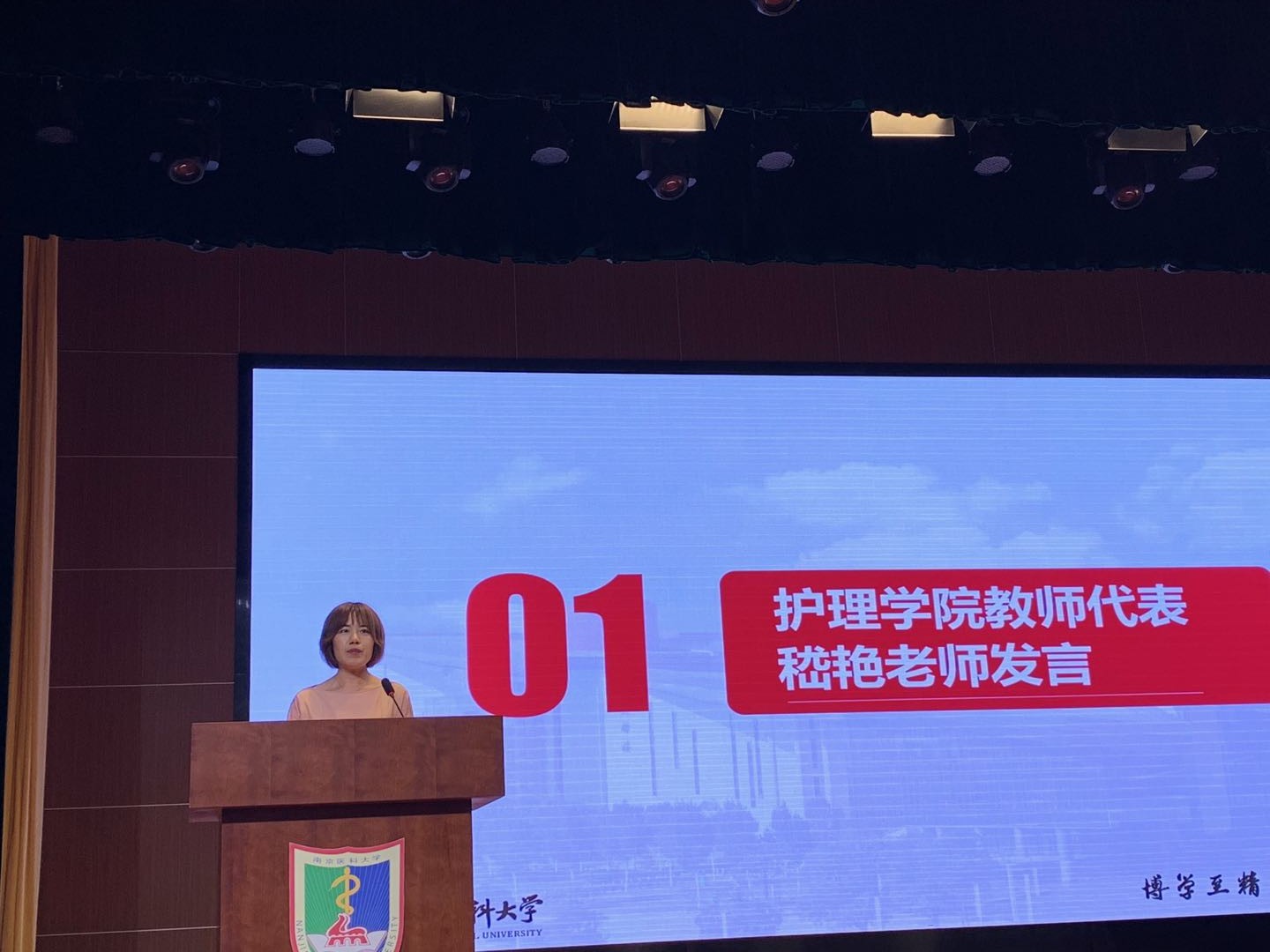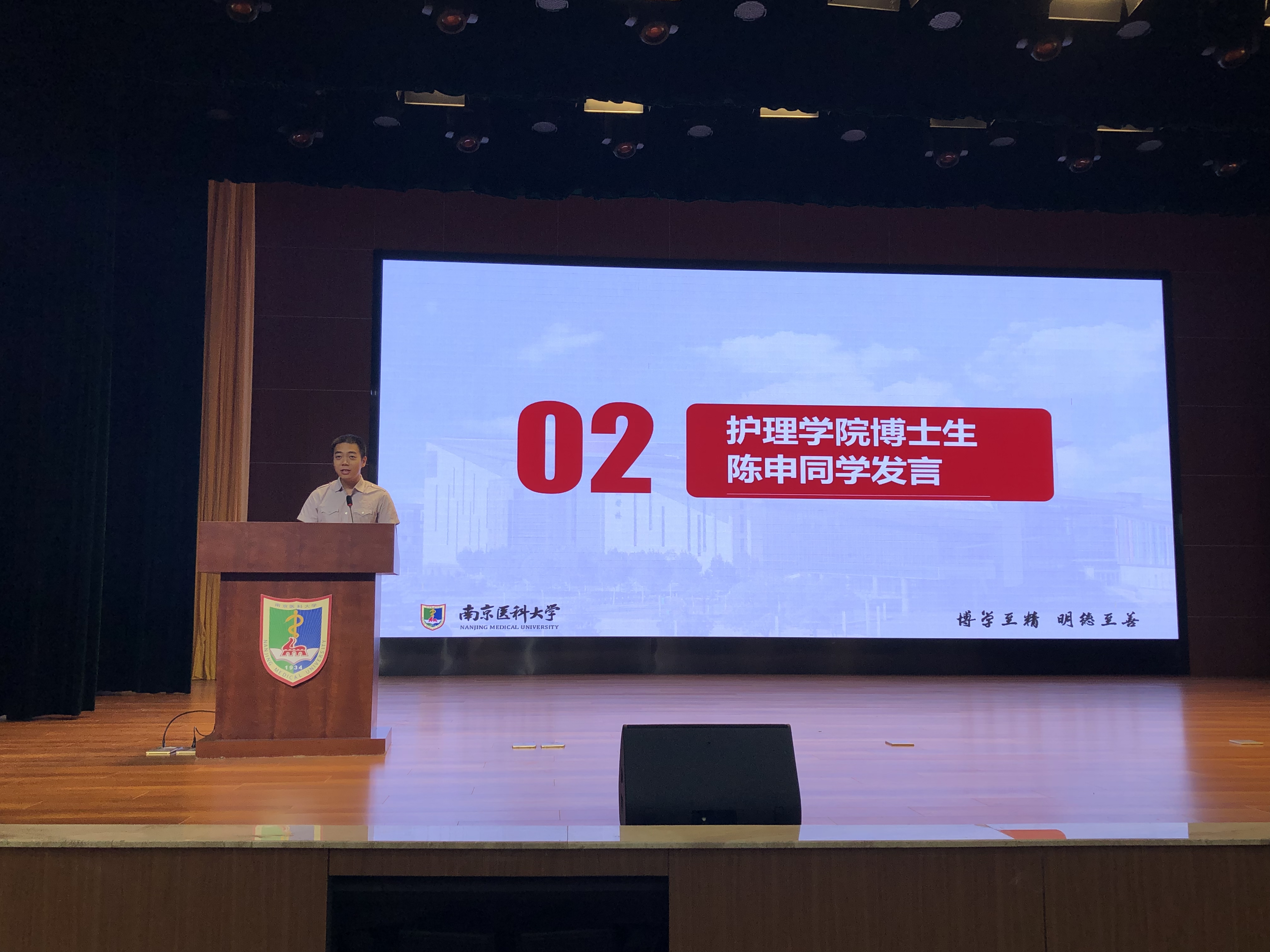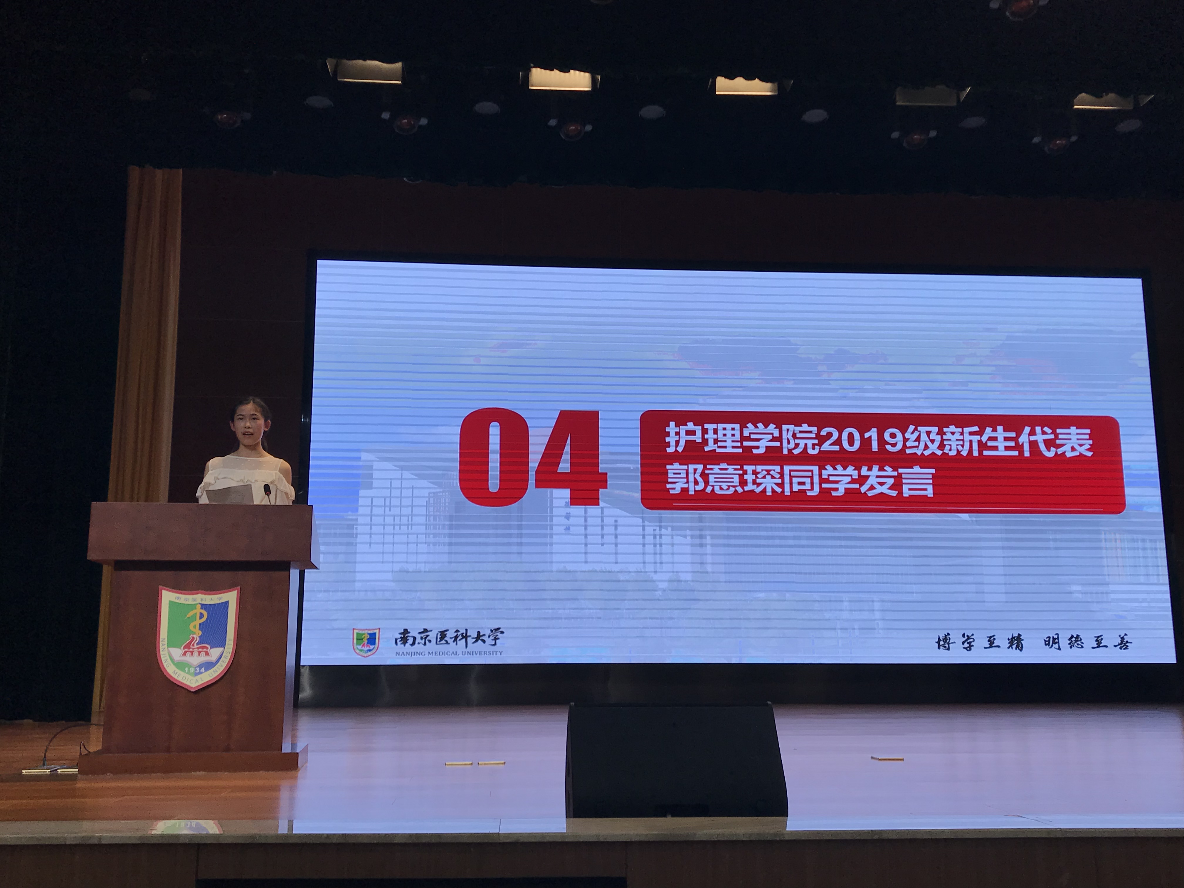 作为19级新生代表,来自2019级护理2班的郭意琛同学与大家分享了她对“护士”这个职业的认知及热爱:她认为同学们的任务是开创护理事业新局面。做个心怀仁爱的青年人,做个博学至善的南医人,珍惜时光,博学笃志。