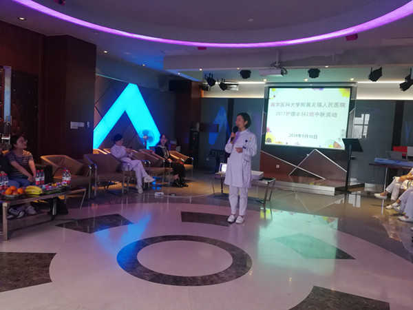 2019年9月10日下午四点半全体17级护理无锡驻点班全体同学及护理部老师、各课程负责人在无锡人民医院职工活动室举行了中秋师生联谊会。此次活动由班级文艺委刘丹妮主持,护理部蔡英华主任和驻点班班主任陈蓉老师发表了节日祝福。