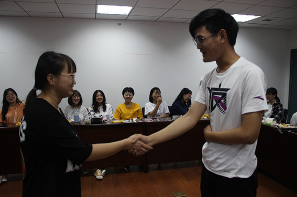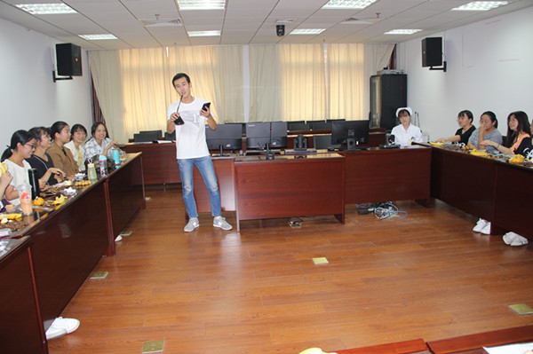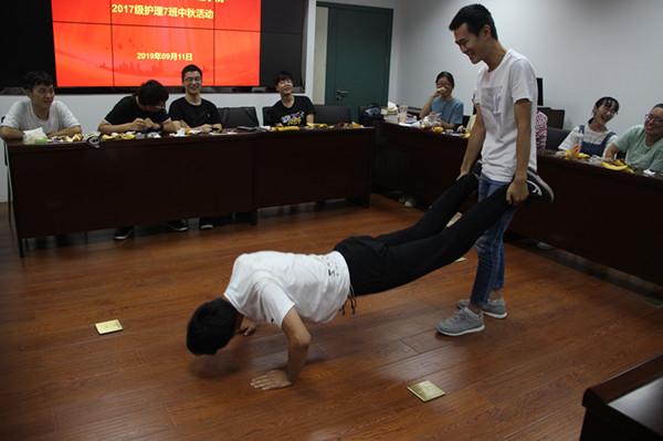 中秋活动在护理部孙四平科长对同学们的美好祝愿中拉开了帷幕……护理培训教育干事黄慧文老师集思广益、精心筹备,为同学们带来了丰富多彩的节目和游戏。同学们的歌声如闻天籁、娓娓动听,赢得了现场的阵阵掌声;“你划我猜”游戏大家积极参与,奇思妙想,其乐融融;“击鼓传花”游戏让同学们热情高涨,将活动推向了高潮……