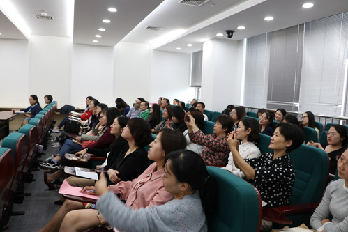 首先,史瑞芬教授讲座“由“课程思政”说开去——从‘人文课程’走向‘课程人文’”,从“课程思政”引入不忘教育初心、不忘健康使命,并详细地从职业精神的渗透、价值信仰的引导、马原原理的运用、科学精神的培养、传统文化的陶冶、人文思想的植入六个方面,讲解了如何从“人文课程”走向“课程人文”。史瑞芬教授精彩的分享让现场老师们数次鼓掌。接着,王锦帆教授就高校通识及专业类“课程思政”进行了探讨,通过梳理通识及专业类课程思政的目标,提出目前课程思政所存在的问题,并给出了课程思政的实施路径及解决方法。讲座期间,王教授通过丰富的现场互动交流,充分启迪了老师们对于课程思政的思考。