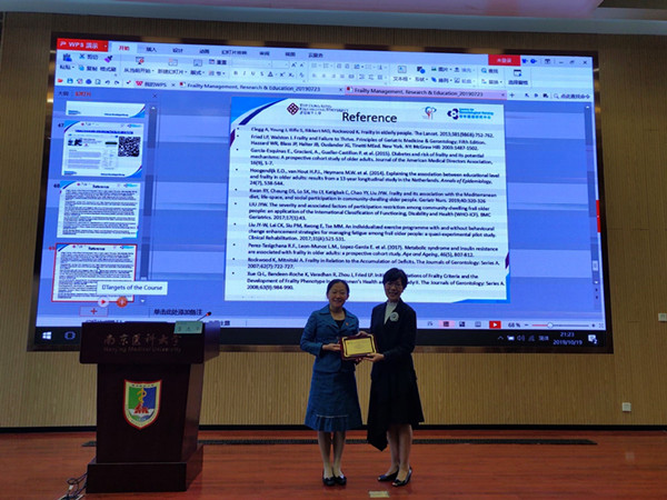 首先,来自香港理工大学的Justina Yat Wa Liu副教授带来题为《The management of frailty》的专题讲座,由殷月姮博士翻译。Dr. Liu首先介绍了香港理工大学九游娱乐(JIUYOU)官方网站_9YOU GAME的招生规模、专业设置、课程开展等情况,接着围绕老年人衰弱的研究进展、影响因素及干预方式等阐释了衰弱的概念发展历程,并通过对比健康老人与衰弱老人的日常行为功能总结了衰弱的五项伴随特征,提出护理团队在这五项特征的转归方面起着非常重要的作用,为护理人员的临床实践工作带来了灵感。