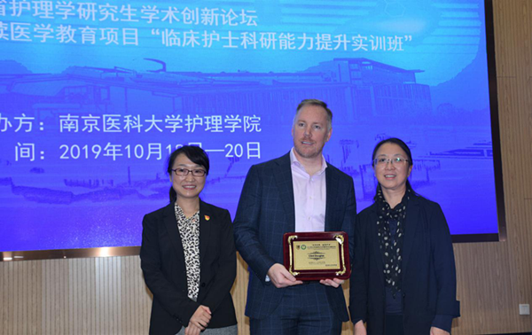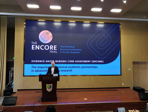 随后,由昆士兰科技大学(Queensland University of Technology)的Clint Douglas副教授做《The importance of clinical/university partnerships in advancing nursing research: The ENCORE Trial》的报告,由我院杨如美副教授翻译。ENCORE(Evidence-based nursing core assessment)是一项健康服务,Clint Douglas副教授就如何建立一个对普通病房进行主动监测的循证模型以及研究团队前期所做工作和后期反思进行了详细地讲解。报告指出护理工作的评估并不局限于某一专科,而是涉及了很多学科的交叉。在疾病的预防和治疗中,护理工作者要勇于思考,与医生、理疗师等医疗人员一起建立合作团队,集思广益,共同解决相关问题。
