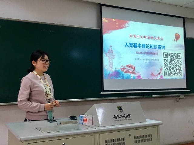 11月5日到7日,“南医微天使”微党课研究生宣讲团成员利用上课前10分钟分别为2019级1-9班的同学们开展了“入党基本理论知识”的主题宣讲。