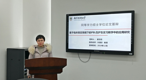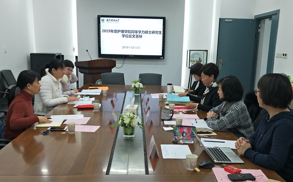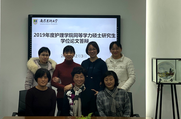 12月3日下午两点,2019年度同等学力硕士研究生硕士论文答辩会在学海楼C504举行。江苏省中医院护理部原主任戴新娟任答辩主席,王洁副教授、周玉峰副教授任答辩委员,朱姝芹副教授任答辩秘书。
