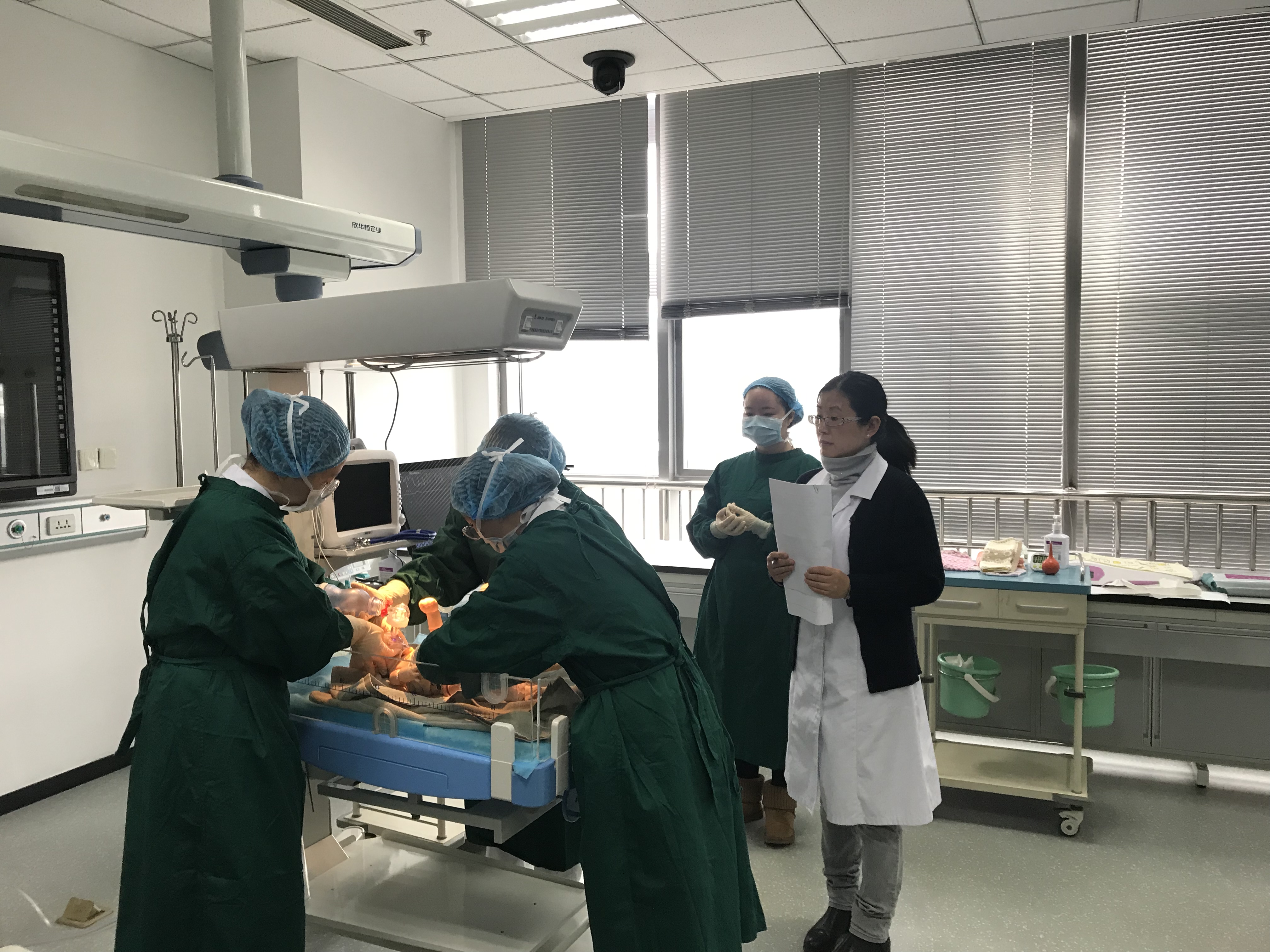 然后,模拟实训正式开始,刚出生的Baby HAL不能自主呼吸,严重缺氧,非常需要得到同学们及时且正确的帮助。很遗憾第一轮模拟实训的同学们失败了。
