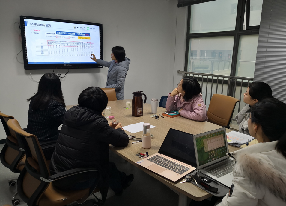在汇报会上,课程负责老师和研究生助教们就自己负责课程的e-learning平台应用与运行情况进行了汇报,大家就汇报中存在的问题和不足互相提出了指导意见和修改建议。