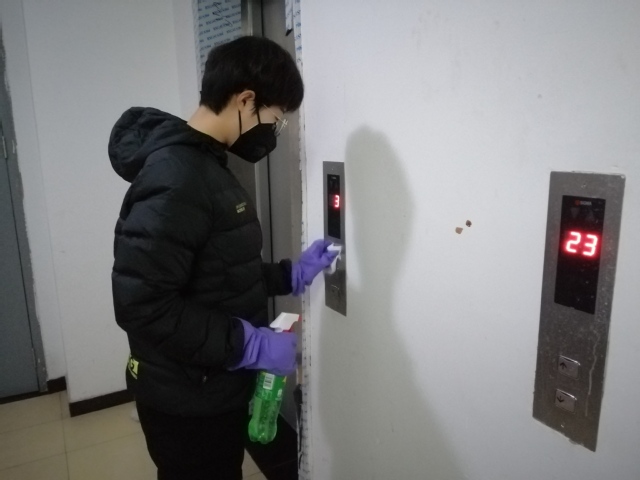 为社区公共环境,如电梯、楼道、大门、长椅等进行消毒,进一步保障居民安全