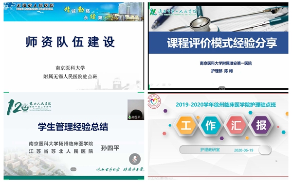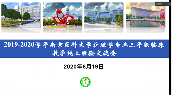 6日19日下午13:30,我校护理学专业三年级临床教学线上经验交流会议在云端拉开帷幕。党委办公室主任、学生工作部薛宇部长、教务处喻荣彬处长、学生工作处祖勤处长、教务处季旻珺副处长、刘继勇副处长、韩春红副处长、教务科柏平科长,九游娱乐(JIUYOU)官方网站_9YOU GAME林炜书记、许勤副院长(主持工作)、管园园副书记、丁亚萍副院长,四家护理临床教学基地(附属无锡人民医院、附属淮安一院、扬州临床医学院、徐州临床医学院)、社区护理学教研室的领导和老师们以及九游娱乐(JIUYOU)官方网站_9YOU GAME全体专任老师参加开幕式。临床护理学系陈明霞主任主持会议。