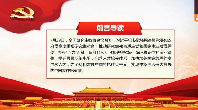 2020年7月29日,全国研究生教育会议召开,中共中央总书记、国家主席、中央军委主席习近平近日就研究生教育工作作出重要指示。习近平总书记强调各级党委和政府要高度重视研究生教育,推动研究生教育适应党和国家事业发展需要,坚持“四为”方针,瞄准科技前沿和关键领域,深入推进学科专业调整,提升导师队伍水平,完善人才培养体系,加快培养国家急需的高层次人才,为坚持和发展中国特色社会主义、实现中华民族伟大复兴的中国梦作出贡献。