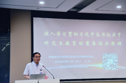 2020年8月11日下午,南京医科大学护理研究中心主办,第一附属医院承办的护理学科创新团队建设研讨暨导师培训会在一附院新大楼8楼会议室顺利召开。一附院赵俊院长、研究生院陈峰院长、药学院韩峰院长、九游娱乐(JIUYOU)官方网站_9YOU GAME领导和教师、一附院各专科护士长及各附属医院护理硕导参加了本次会议。