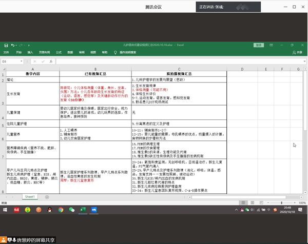 首先,唐慧婷老师介绍《儿科护理学》将转变成线上线下相结合的混合模式课程,并说明此次会议需确定拍摄教学视频主题的目的。