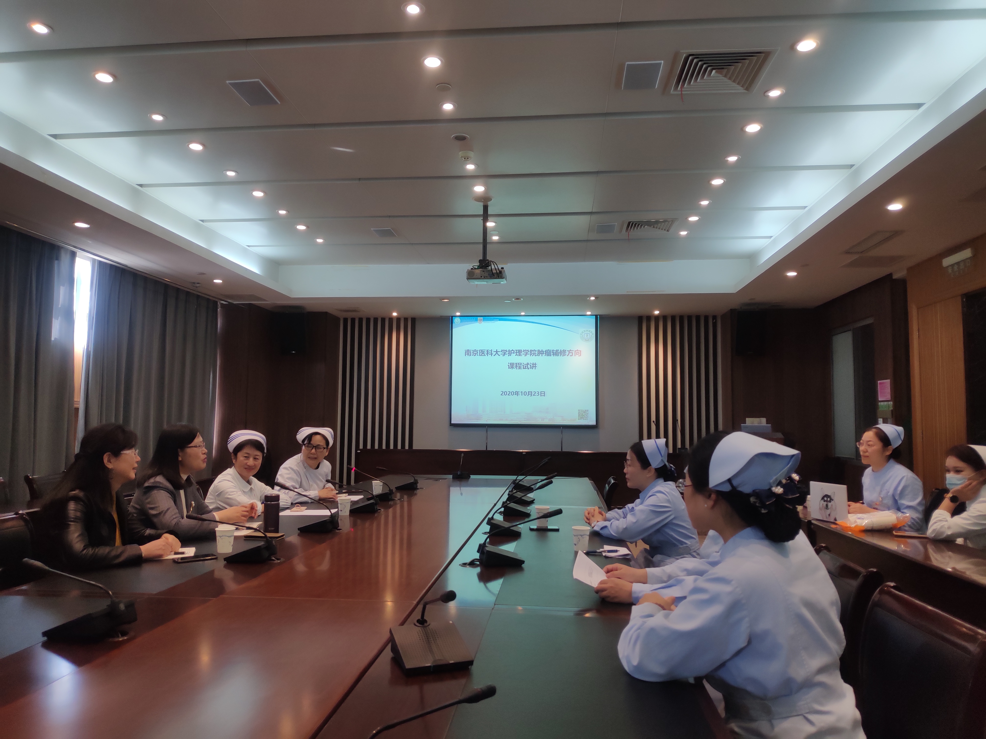 10月23日上午10时,九游娱乐(JIUYOU)官方网站_9YOU GAME肿瘤护理辅修方向教师试讲活动在附属肿瘤医院1号楼16楼多功能学术厅顺利举办。临床护理学系主任陈明霞、副主任董玲担任试讲活动评审专家。南京医科大学附属肿瘤医院临床护理教研室主任孟爱凤、副主任徐德静对2位专家的到来表示欢迎,并介绍了附属肿瘤医院从8月份开始筹备肿瘤护理辅修方向课程设置,内容包括7大模块,分别为:肿瘤学概论、肿瘤患者主要治疗的护理要点、肿瘤患者常见症状的护理、肿瘤相关技术培训、肿瘤患者全程管理及心理社会支持、不同类别肿瘤患者的护理要点、肿瘤护理研究方向及热点等内容,并于9月上旬开展辅修方向教师选拔工作,通过在院内教研室筛选、试讲、评比,最终推选出6位老师承担课程内容授课。