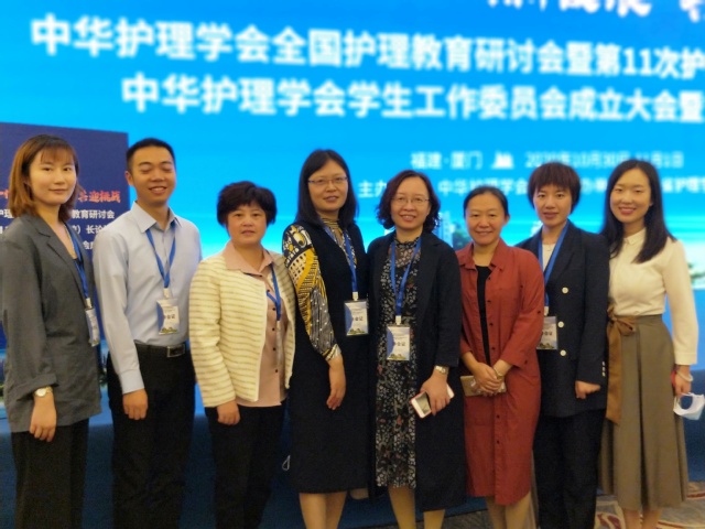 为进一步加强护理专业教学领域的交流与合作,促进医教协同背景下的教育教学改革,推动我国护理教育事业的健康发展,提高护理人才培养质量,中华护理学会全国护理教育研讨会暨第11次九游娱乐(JIUYOU)官方网站_9YOU GAME(校)长论坛于10月30日-11月1日在福建厦门举行,同期举行第二届全国高等护理院校中青年教师授课比赛,中华护理学会学生工作委员会成立大会暨第一次工作会议。许勤院长带队,我院师生9人参加盛会。博士研究生陈申被聘为学生工作委员会副主任委员,嵇艳老师和硕士研究生刘玲珑获聘学生工作委员会委员。
