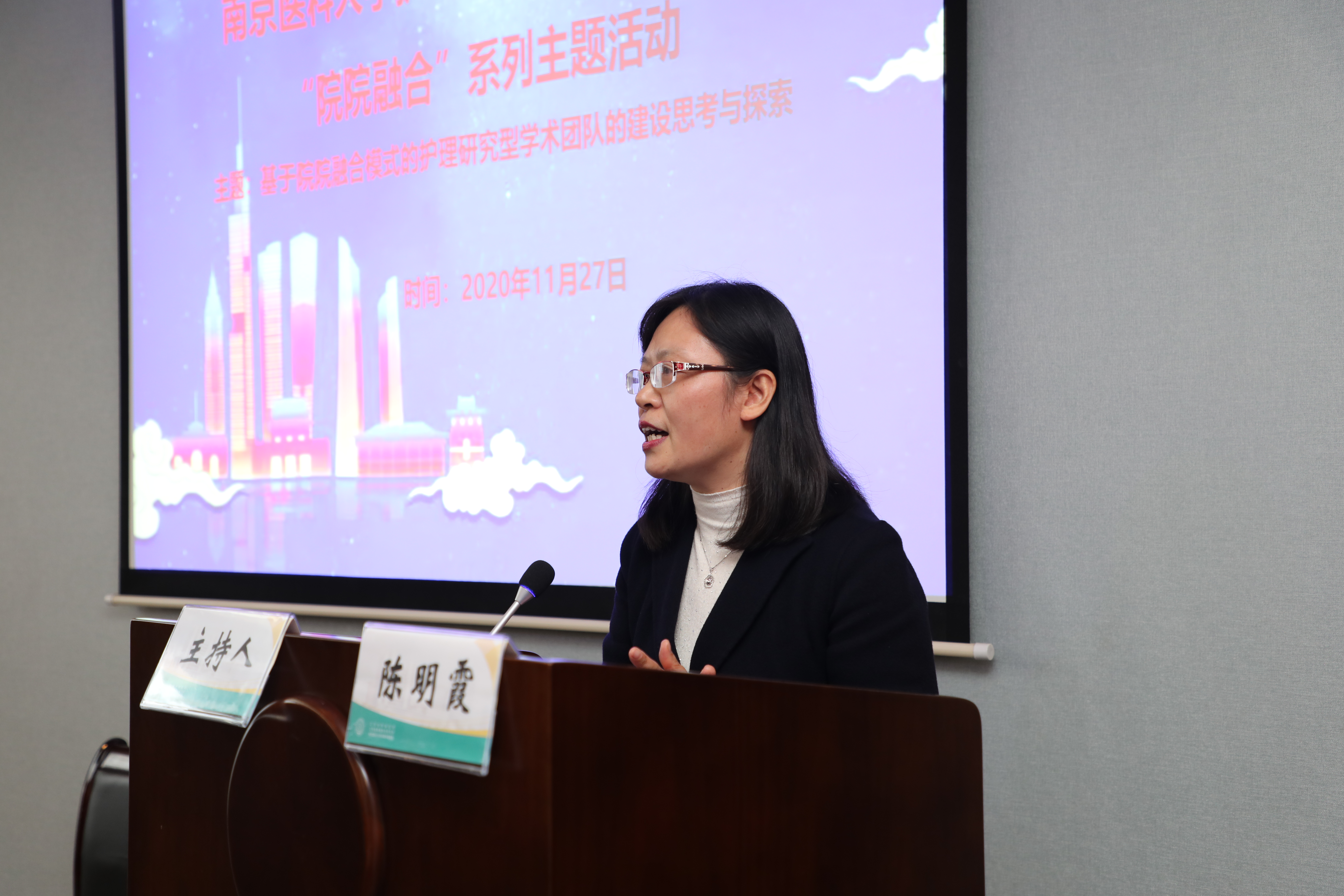 临床护理学系主任陈明霞为大家介绍了“院院融合”主题活动的背景,主题活动的形式及意义。