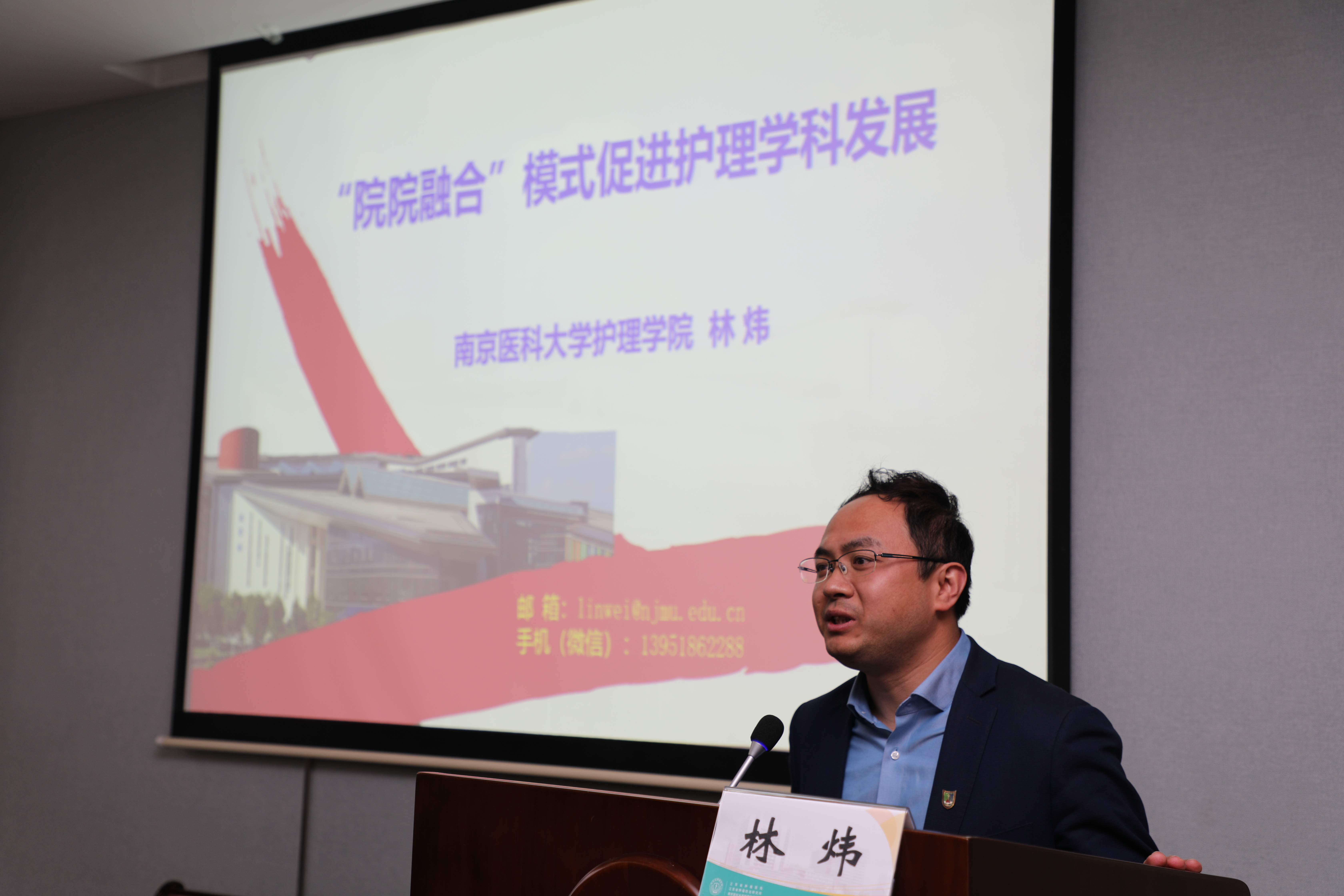 党总支书记林炜进行了专题讲座《“院院融合”模式促进护理学科发展》,他以“院院融合”的内涵与举措为内容展开思考,强调这是深化综合改革的必然选择,同时也是响应国家发布一系列深化综合改革的举措。林书记指出,改革是破除体制机制障碍壁垒的最有效手段,必须打通高校与医院的“最后一公里”,学院与医院的融合是实现转化医学和循证护理的必由之路,而且高校学科建设与专业建设,医院学科建设与专科建设息息相关,借助“院院融合”平台,多途径、多形式培养临床教学师资。