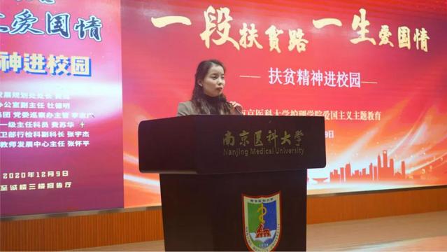 随后,江苏省委2018-2019年度驻丰县帮扶工作队队长黄挺从信仰、情怀、格局观这三个角度进行了题为“一段扶贫路,一生爱国情”的主题演讲。演讲中极具温度的扶贫故事,生动诠释了这个奋进时代里脱贫攻坚战场上最可爱、最值得书写的群体。黄队长认为,南京医科大学历年扶贫工作,为“江苏经验”的形成作出了积极贡献。希望广大青年学子继续发扬扶贫精神,把个人的理想追求融入党和国家事业之中,让青春之花绽放在祖国最需要的地方。