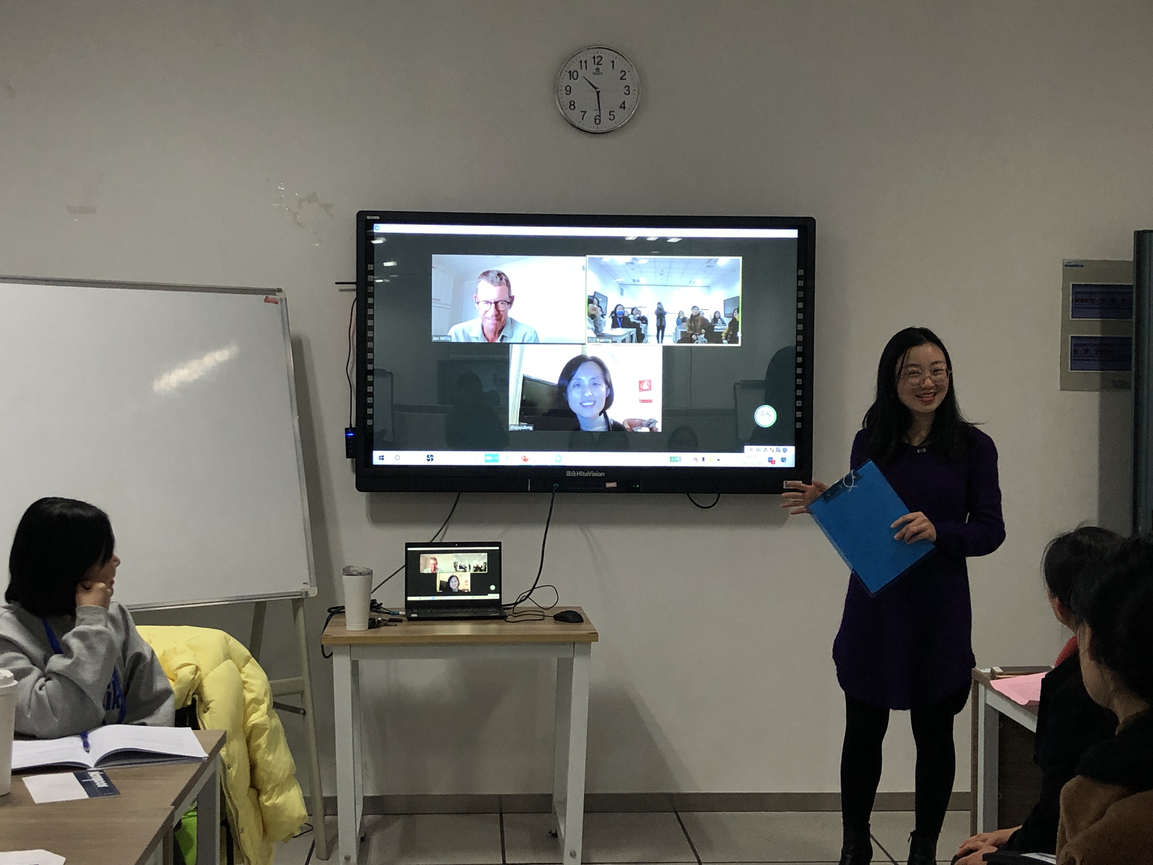 2021年1月16日上午,由九游娱乐(JIUYOU)官方网站_9YOU GAME主办的“Teaching.Learning.Developing”国际教育培训项目开幕式在学海楼C516顺利开展。现位于新西兰的课程主讲人Willis教授、位于英国利物浦的周玉峰副教授与培训现场的老师、学员在云端相会。