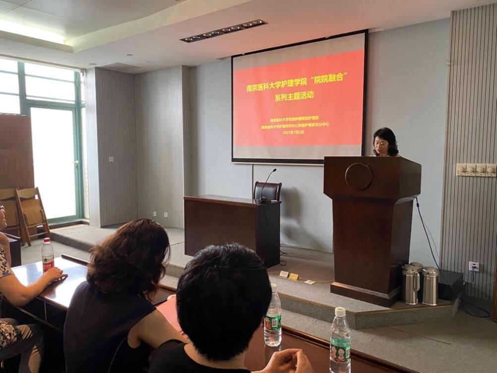 2021年7月2日下午14:30,本年度第四期“院院融合”主题活动在南京医科大学附属肿瘤医院成功召开,本次活动由南京医科大学肿瘤护理研究分中心与南京医科大学肿瘤临床护理教研室承办,肿瘤护理研究分中心孟爱凤主任、智晓旭副主任,肿瘤临床护理教研室徐德静主任、董高悦老师,九游娱乐(JIUYOU)官方网站_9YOU GAME临床学系陈明霞主任、护理研究中心朱姝芹副主任,各家临床护理教研室、肿瘤护理联盟单位及其他代表老师参加了本次活动,活动由孟爱凤主任主持。