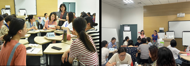 同时,组织了5个半天分组“工作坊”,带领学员们完成了多个情景案例编写与讨论,通过“模拟前引导”、“模拟案例运行与反馈”与“模拟教学评价”模拟演练,让学员们学用互动,实践为先,在实战演练中领会情境模拟教学的精髓,深入交流探讨不足及提升办法。