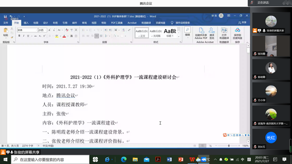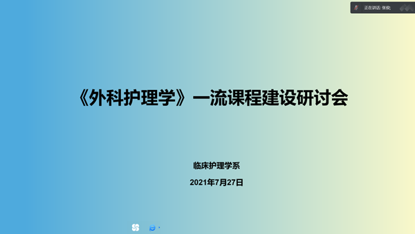 为加强《外科护理学》一流课程建设,促进授课模式的转变,2021年7月27日19:30,我院临床护理学系在线开展了《外科护理学》一流课程建设研讨会。