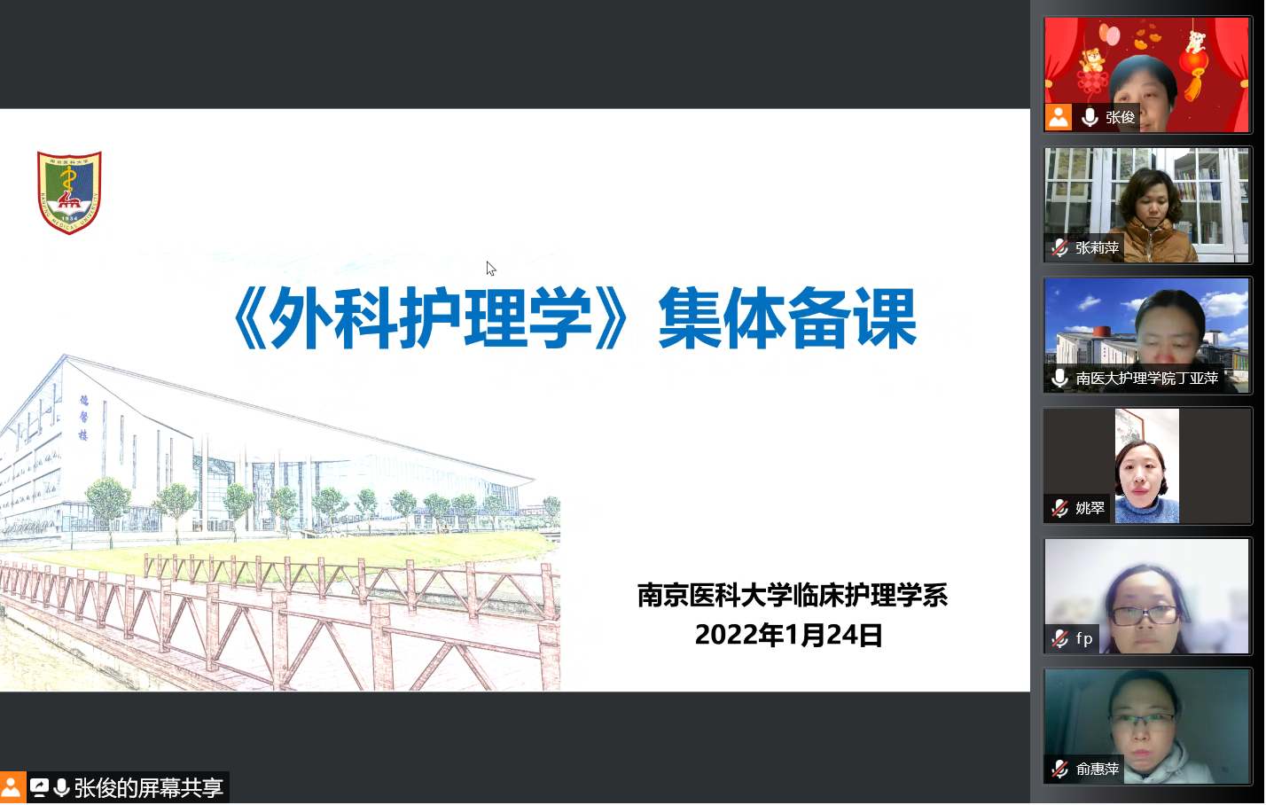 为进一步推进《外科护理学》课程建设改革,逐步提升课程改革成效,2022年1月24日晚上19:30分,九游娱乐(JIUYOU)官方网站_9YOU GAME临床护理学系线上开展了《外科护理学》课程新学期集体备课。