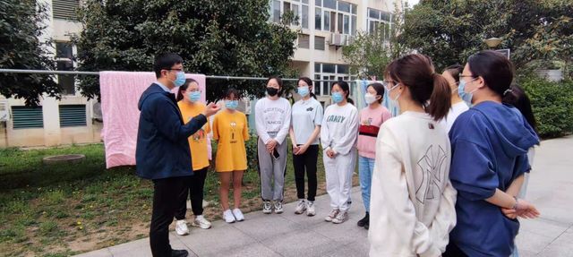 院党总支书记陈龙深入20级本科生宿舍并和20级部分班干部在宿舍区进行交流。陈书记希望同学们自觉遵守学校疫情防控规定,严格落实健康日报制度,做好宿舍卫生保洁,勤通风、勤洗手、不串门,出门全程佩戴口罩,就餐注意安全距离;同时要以饱满的热情上好每一节线上课程,积极与老师互动交流,保证线上课的学习效果,课间劳逸结合,适当户外体育运动,保持阳光、积极、健康的心态。