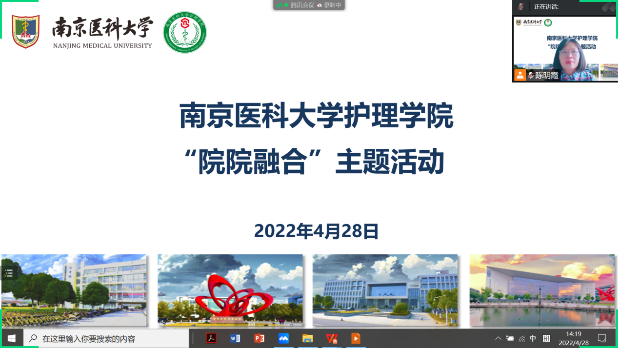 4月28日下午14:30我院举办了2022年第二期“院院融合”主题活动,本期活动采用线上的方式进行,由临床护理学系陈明霞主任主持,各附属医院临床护理教研室、社区教研室的护理管理人员、护理骨干、教学骨干参加了本次会议,共计线上参会400余人,与会人数创历史新高。