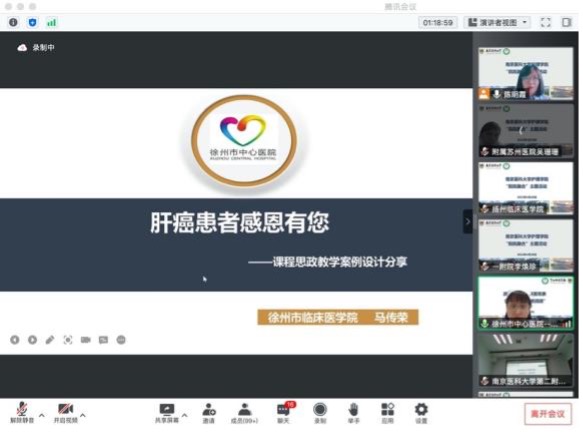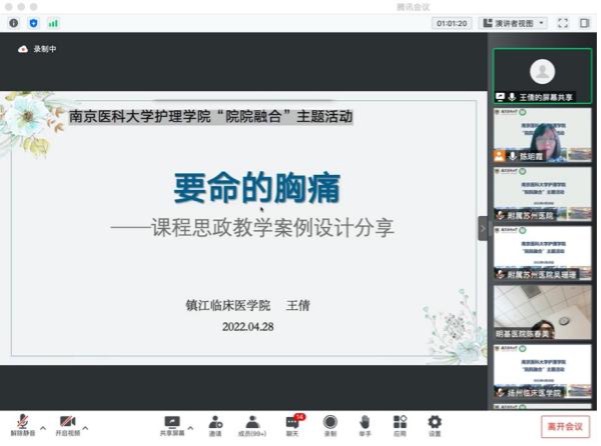 接着,王倩与马传荣两位正工作在抗击疫情一线的老师,一边坚守岗位一边创造条件汇报分享了各自的思政教学案例。两位老师从自己的课程教学内容出发,契合急性心梗和原发性肝癌的知识点,挖掘思政元素、收集整合思政素材,实施思政教学设计,并分享了各自的思政教学感悟与思考。其中马老师特别强调,教师本身也是思政教育的一部分,以身作则才可起到理想的教学效果。