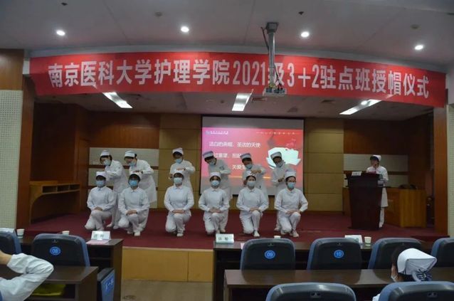 在校内举办授帽传光仪式的同时,附属无锡人民医院、附属苏州医院、镇江临床医学院、扬州临床医学院、附属淮安第一医院、徐州临床医学院、附属江宁医院等7家医院陆续为2019级宁外5个见习班和2021级3+2班同学们举办了授帽传光仪式。