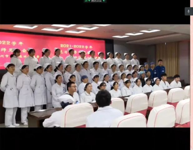 江苏省护理学会吴金凤秘书长线上致辞,她鼓励同学们,秉承前辈之志,救死扶伤,用勤劳的双手和博大的爱,守卫健康,做新时代的“南丁格尔”,让护理事业薪火相传。