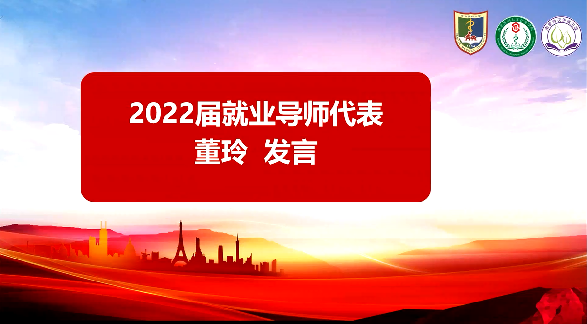 2022届就业导师代表、临床护理学系教师董玲老师发言。她提出就业导师可以通过一对一谈心谈话,了解学生真实就业打算,并发挥自身专业优势,实现医院与学校间信息共享,切实帮助同学们高质量就业。