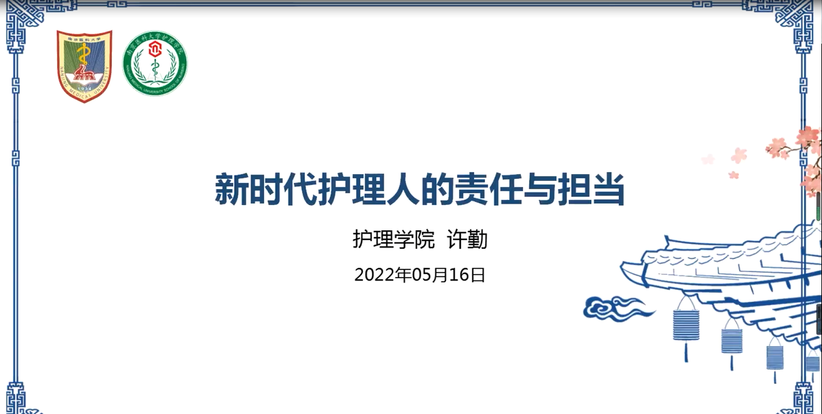 许勤院长从自身经历、护理人的担当、总书记对青年人的期望三个角度展开讲授。