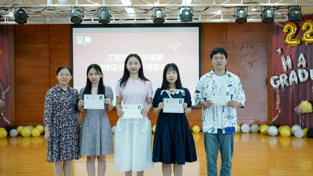 接下来,丁亚萍副院长宣读辅修证书名单并颁发证书;苏益民副书记宣读优秀毕业生、优秀实习大组长、优秀实习生的表彰决定;李现文老师宣读优秀本科生毕业论文评审结果及“科研之星”的表彰决定,老师们也希望获得表彰的同学在以后的工作岗位继续发挥模范作用,不断进取。